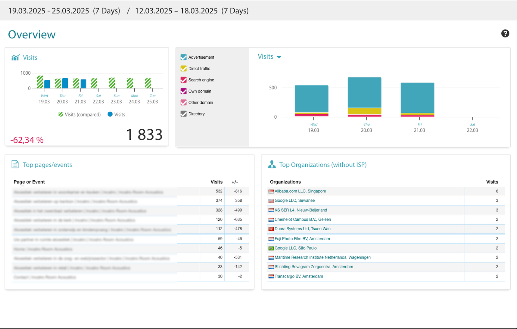 - Top-10 organisaties die je website bezochten in de laatste 7 dagen, via Advertenties of Social Media links - inclusief Internet Service Providers