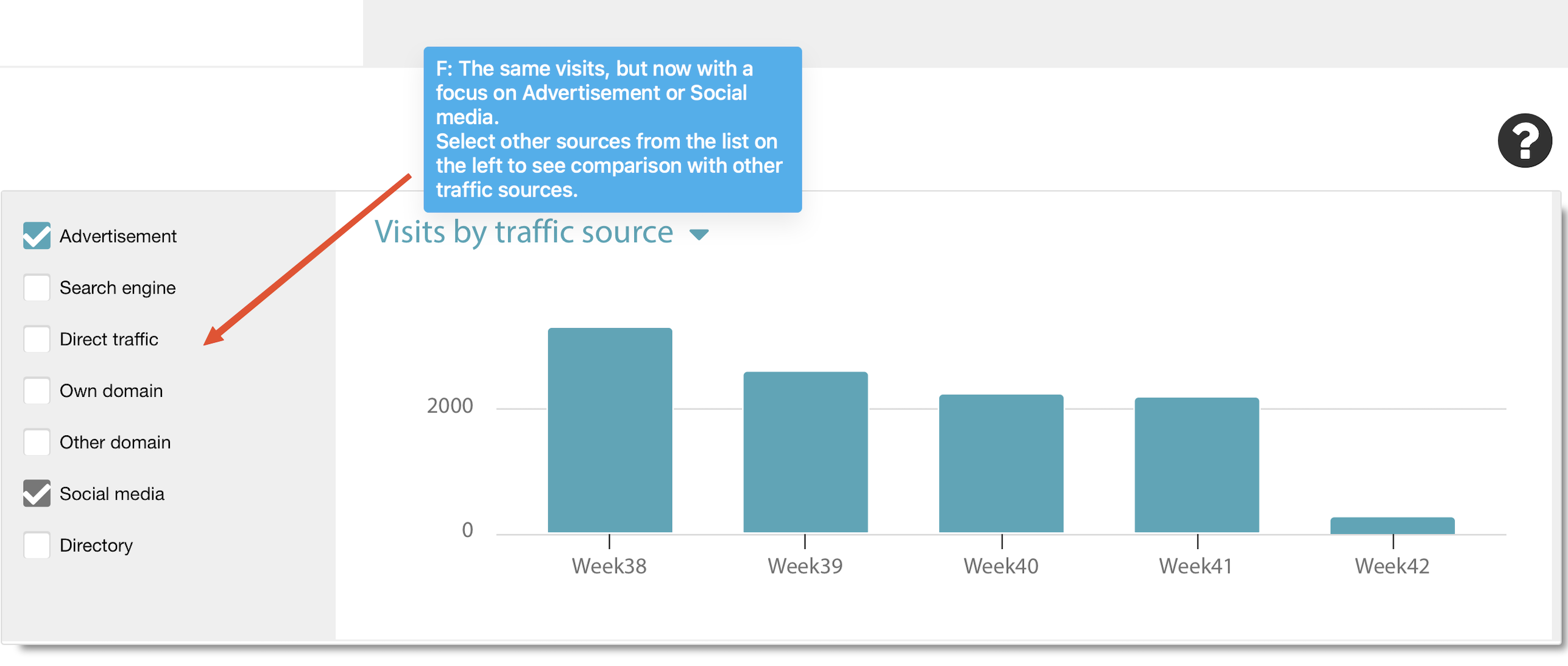 F-- The overview of the source of the visits for the last 7 (30) days, with a focus on advertising and social media.